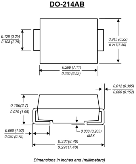 Strona główna » Półprzewodniki » Diody » Diody Schottky » Diody Schottky SMD » Dioda 60V 850mV@5A 5A SS56(SMC)